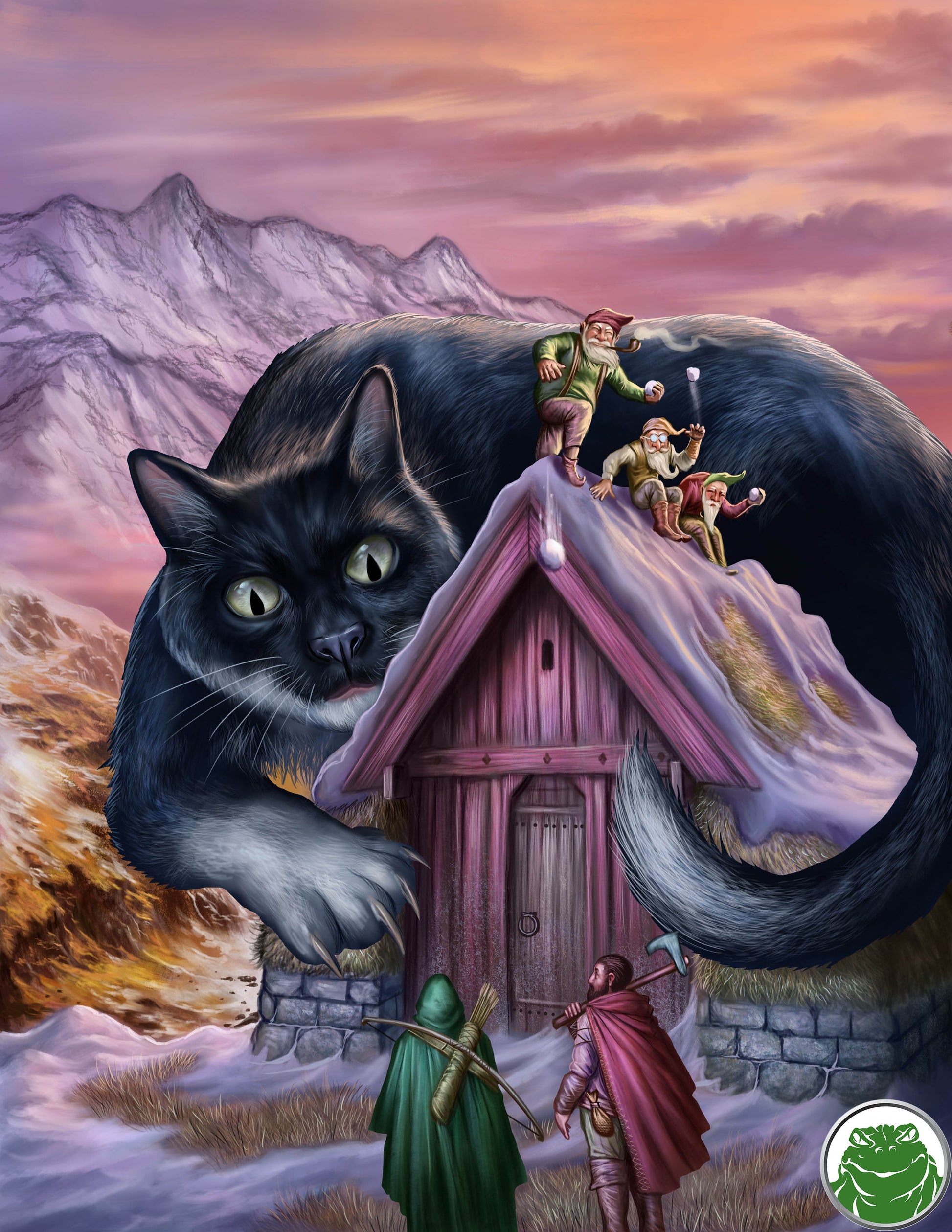 Night is falling across the frozen plains of the Northlands. It's Yule Eve, but you're tired, hungry, and footsore. Ahead lies the village of Köldhorn — Cold Corners in the Common tongue — where you are sure to find warmth, food, and shelter, especially on this festive night. But upon arrival you find the streets deserted, and the villagers hidden behind locked doors. Soon, you realize that you've inadvertently found yourselves in the middle of a generations-long struggle between the people of Cold Corners and the evil fae troll Grýla, her husband Leppalúði, their sons the mischievous Jólasveinar — or Yule Lads — and worst of all her favorite pet, the fierce Jólakötturinn, better known as the Yule Cat.